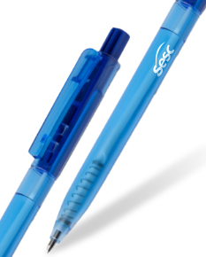Caneta esferográfica elaborada em plástico translúcido. Acionamento por clique.