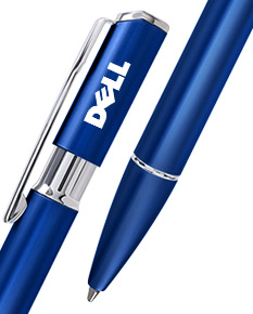 Caneta com corpo metálico, ponteira e clip em plástico. Possui acionamento por clique e carga esferográfica azul de 1.0mm, oferecendo uma escrita suave e precisa com pegada leve e confortável para o uso diário.