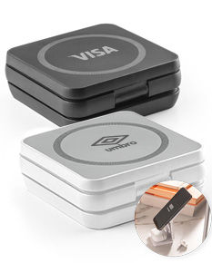 Carregador magnético wireless super rápido dobrável em ABS 100% reciclado, permite carregar três dispositivos simultaneamente: celular 15W, fones de ouvido 5W e smartwatch 2,5W, com tecnologia de carregamento sem fios. Incluso um grip magnético extra para ser colocado nos smartphones que não tenham e um cabo de carregamento rápido USB-C. Ideal para usar no escritório e levar em viagem. O produto também pode ser utilizado como suporte. Fornecida em caixa presente de papel kraft. Dobrado: 70 x 70 x 25 mm | Caixa: 110 x 90 x 36 mm