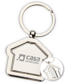 Um prático chaveiro em metal, com design em formato de casa e um anel giratório. Ideal para organizar suas chaves com estilo e facilidade.