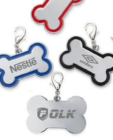 Chaveiro em formato de osso, com medidas de 32 x 22 x 2 mm. É ideal para identificar animais de estimação, oferecendo um acessório prático e funcional para personalização e fácil reconhecimento.