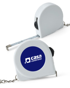 Um chaveiro plástico de trena é o item ideal para quem gosta de tudo sob medida. Sua fita de aço tem o alcance de até 2 metros e, além disso, apresenta suas medidas em pés e polegadas, o que a torna uma ferramenta versátil para fazer medições mais simples no dia a dia. Conta ainda com uma trava de segurança de fácil acionamento: basta deslizar que a fita é contida totalmente no trecho desejado, além de uma argola de metal para encaixar chaves ou conectar a outro chaveiro.