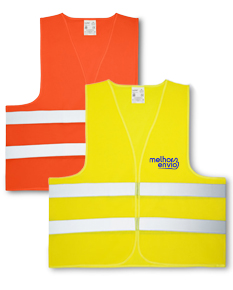 Colete de alta visibilidade em 100% poliéster com certificado pela norma EN ISO 20471 classe 2. Colete refletivo com 2 bandas refletoras horizontais e abertura frontal com fecho de velcro