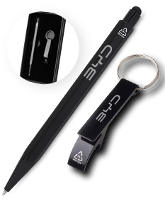 Conjunto composto por chaveiro modelo pé de galinha produzido em alumínio reciclado e caneta confeccionada no mesmo material, reforçando o compromisso com a sustentabilidade. A caneta possui acionamento prático, régua integrada no corpo e design sem clipe, garantindo visual moderno e funcional. Um brinde corporativo ecológico, versátil e ideal para ações promocionais que valorizam a marca.