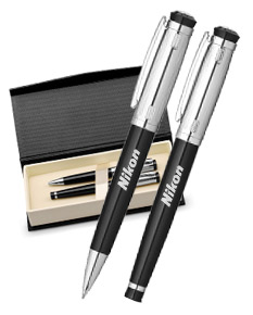 Conjunto de roller e esferográfica. Em estojo almofadado.