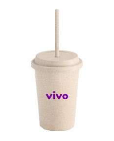 Copo de viagem fibra de bambu e PP com canudo retrátil capacidade 450 ml