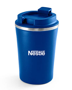 Copo de viagem em aço inox e PP com parede dupla e isolamento a vácuo. Acabamento mate e revestimento em pó que lhe confere mais durabilidade e resistência. Tem capacidade até 470ml.
