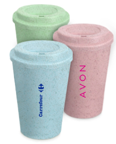 Copo fibra de arroz e polipropileno com capacidade de 450ml livre de BPA, possui tampa com bocal.