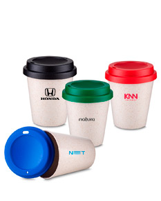 Copo plastico e fibra de arroz 350ml com tampa