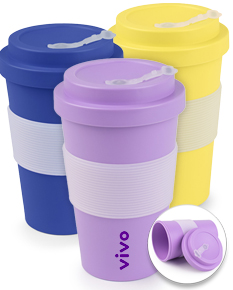 Copo plástico feito de RPET, um material sustentável, com capacidade de 400 ml. Apresenta uma tampa rosqueável que garante fechamento seguro e um detalhe em silicone que proporciona um toque macio e antiderrapante. Ideal para uso diário, combina funcionalidade e respeito ao meio ambiente.