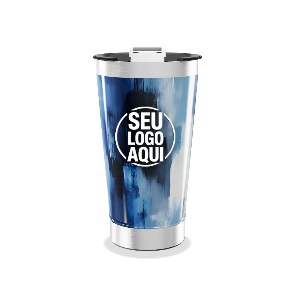 copo térmico azul com pintura abstrata personalizado