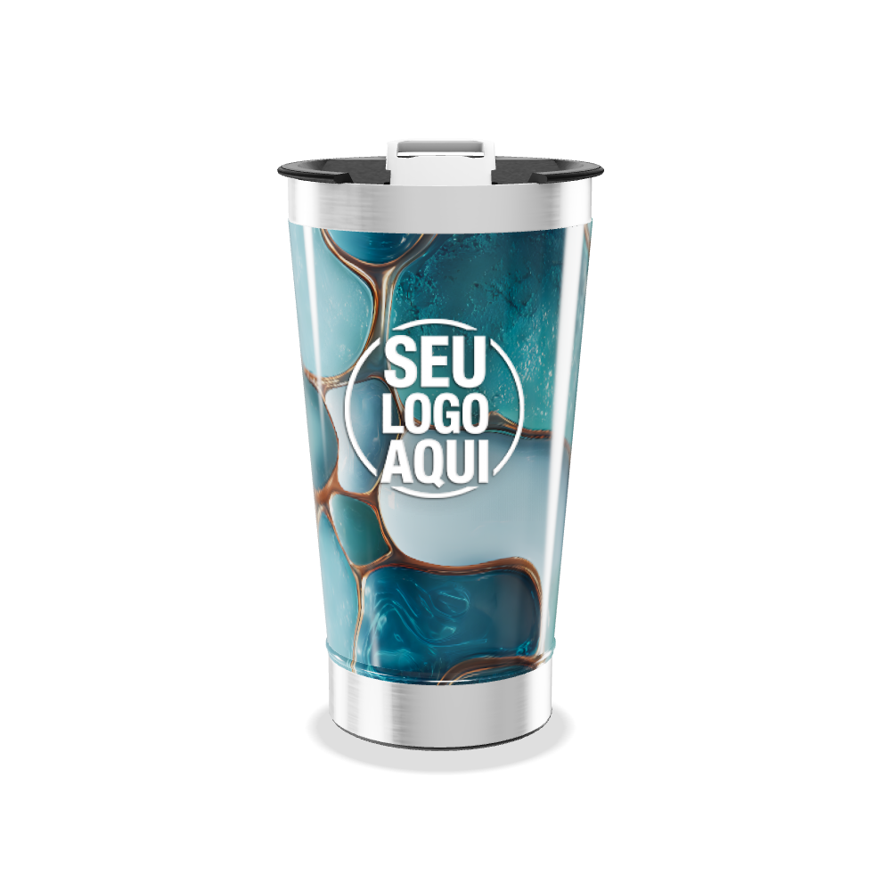 copo térmico azul estampado geométrico personalizado