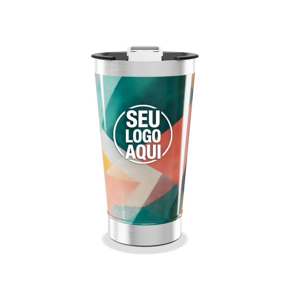 copo térmico com estampa geométrica colorida personalizado