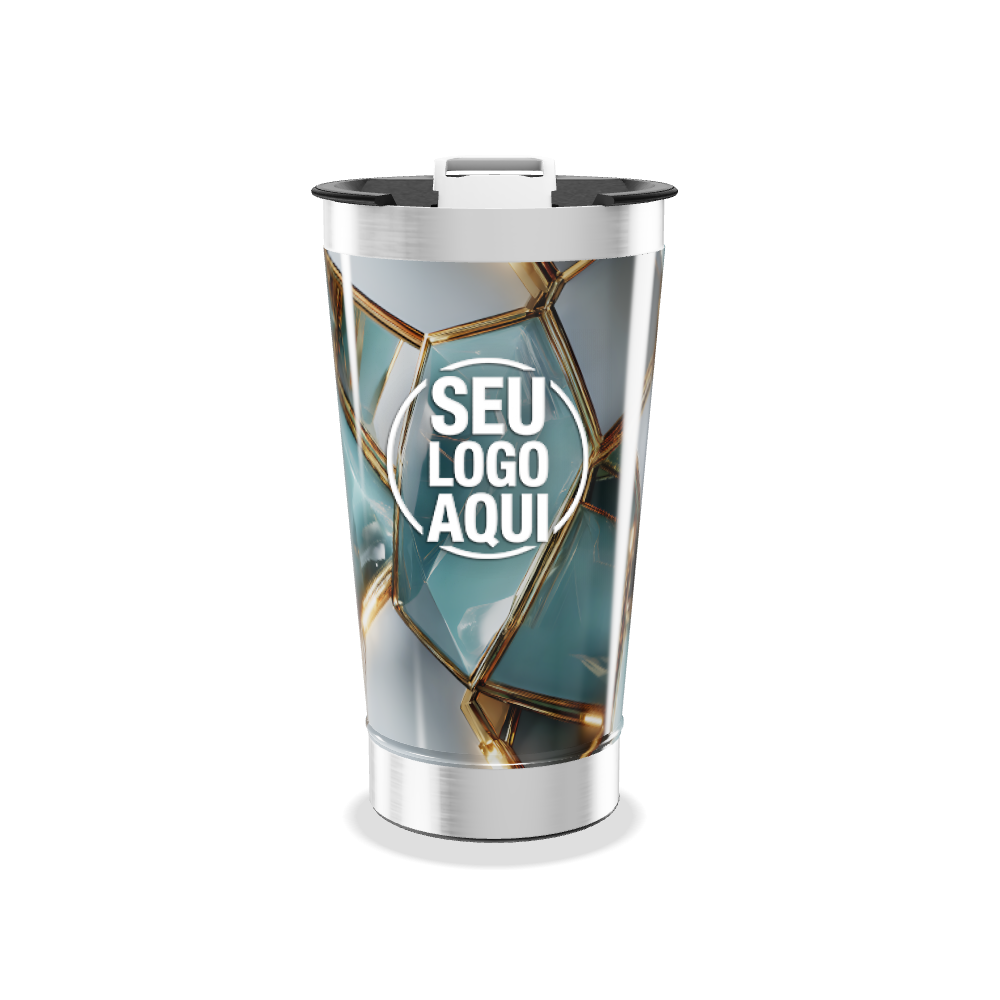 copo térmico cristais azul e dourado personalizado