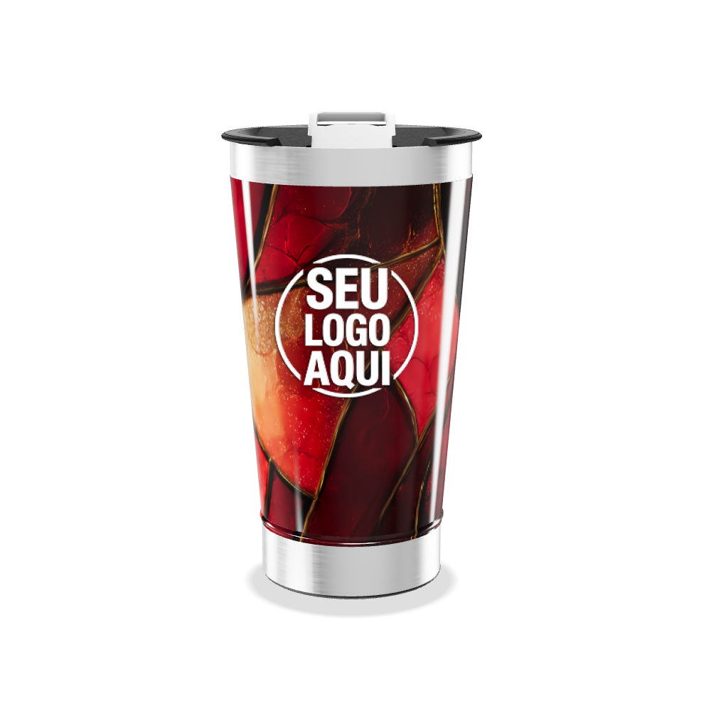 Este copo térmico apresenta uma estampa abstrata vermelha que certamente atrairá olhares. Com design moderno e funcional, é perfeito para manter suas bebidas na temperatura ideal por mais tempo. Ideal para quem busca um estilo único e original em seus utensílios do dia a dia.