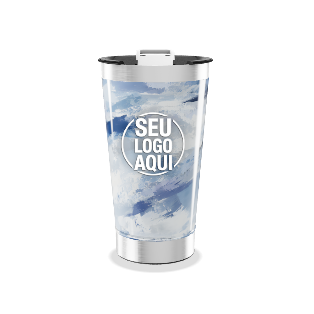 copo térmico estampa azul e branco personalizado