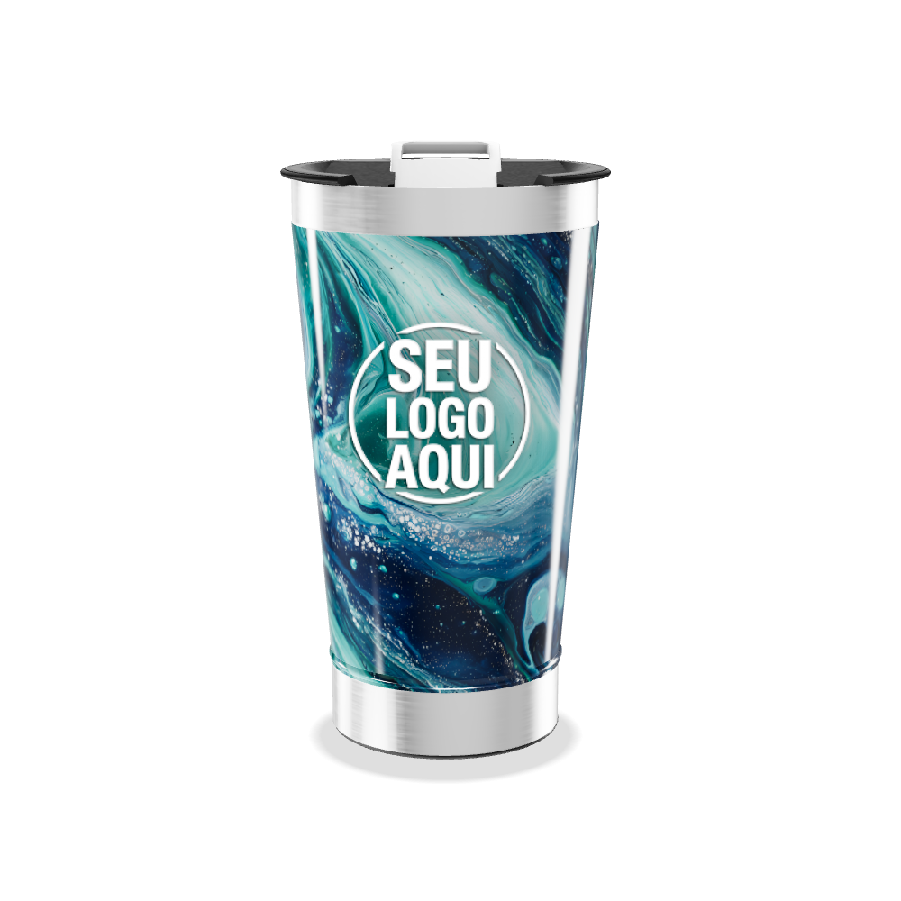 Mantenha suas bebidas na temperatura ideal por mais tempo com este copo térmico. Com uma estampa moderna em tons de azul e verde, é perfeito para acompanhar você no dia a dia, seja no trabalho, na academia ou em viagens. Prático e funcional, é o acessório essencial para manter-se hidratado com estilo.