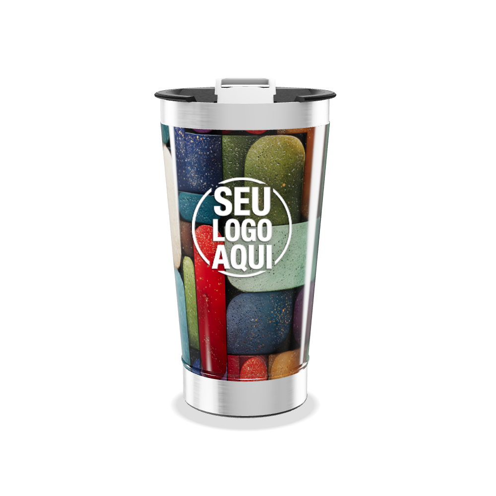 copo térmico estampa colorida geométrica personalizado