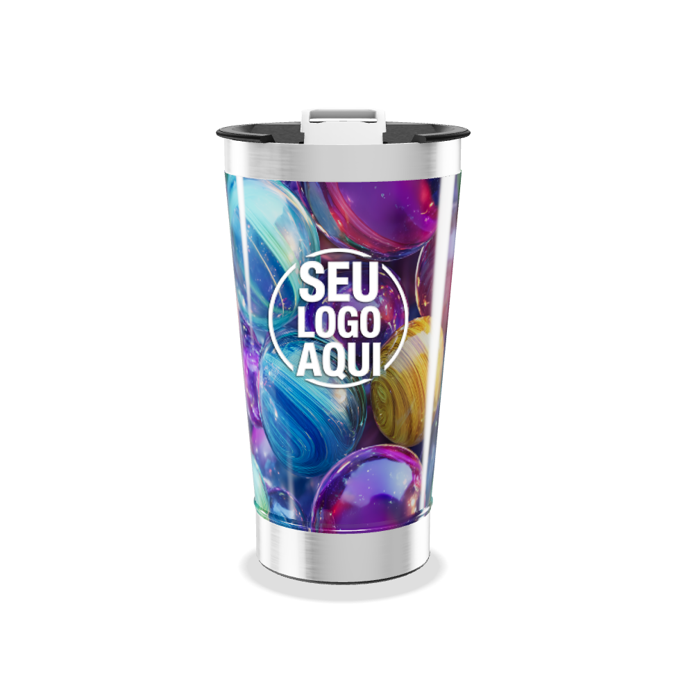 Copo Térmico Inox 500ml com tampa e abridor.