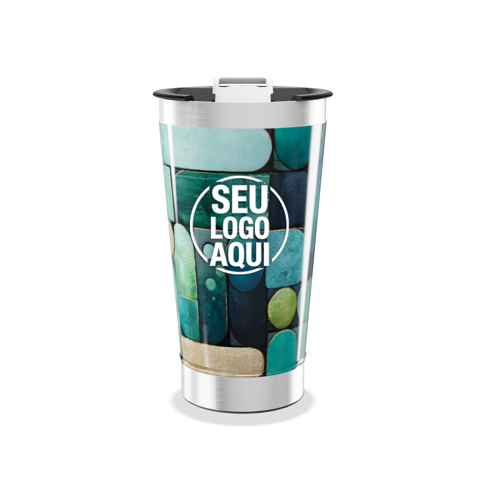 copo térmico estampa geométrica azul personalizado