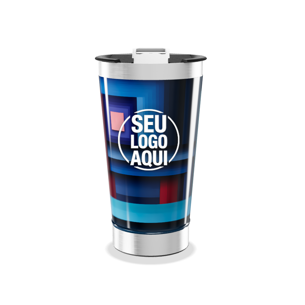 Mantenha sua bebida favorita sempre na temperatura ideal com este moderno copo térmico. Com estampa geométrica azul, ele é perfeito para te acompanhar no dia a dia com muito estilo. Leve praticidade e elegância para onde quer que você vá.