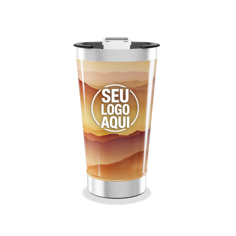 copo térmico estampa montanhas laranja personalizado