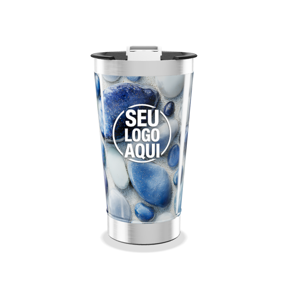 Mantenha suas bebidas na temperatura certa por mais tempo com esse copo térmico estampado com pedras azuis. Ideal para levar para o trabalho, academia ou fazer um picnic no parque. Leve, prático e funcional, é o acessório perfeito para manter a sua bebida favorita sempre fresquinha ou quentinha.
