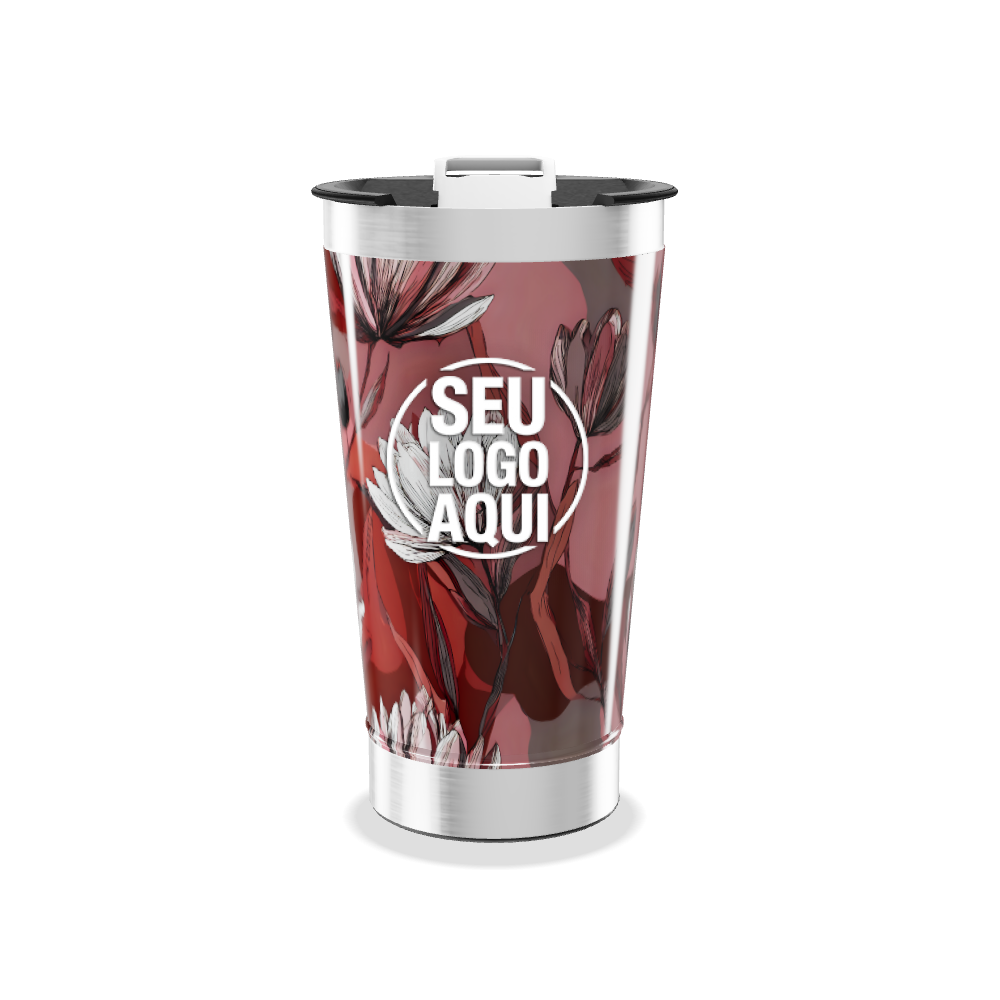 copo térmico floral vermelho aço inox personalizado