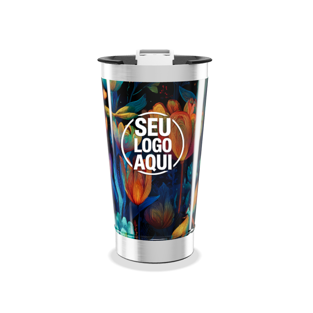 Mantenha suas bebidas favoritas na temperatura ideal por mais tempo com este copo térmico de alta qualidade. Com seu design elegante e estampa de flores coloridas, é perfeito para levar para o trabalho, academia, viagens ou simplesmente para desfrutar em casa. Leve praticidade e estilo para todos os momentos do seu dia com este copo térmico.