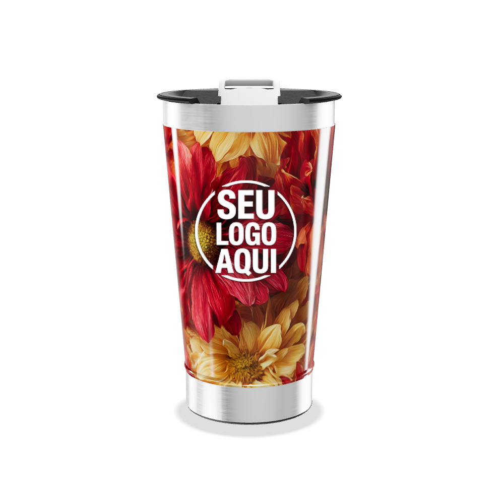 copo térmico flores vermelhas e amarelas personalizado