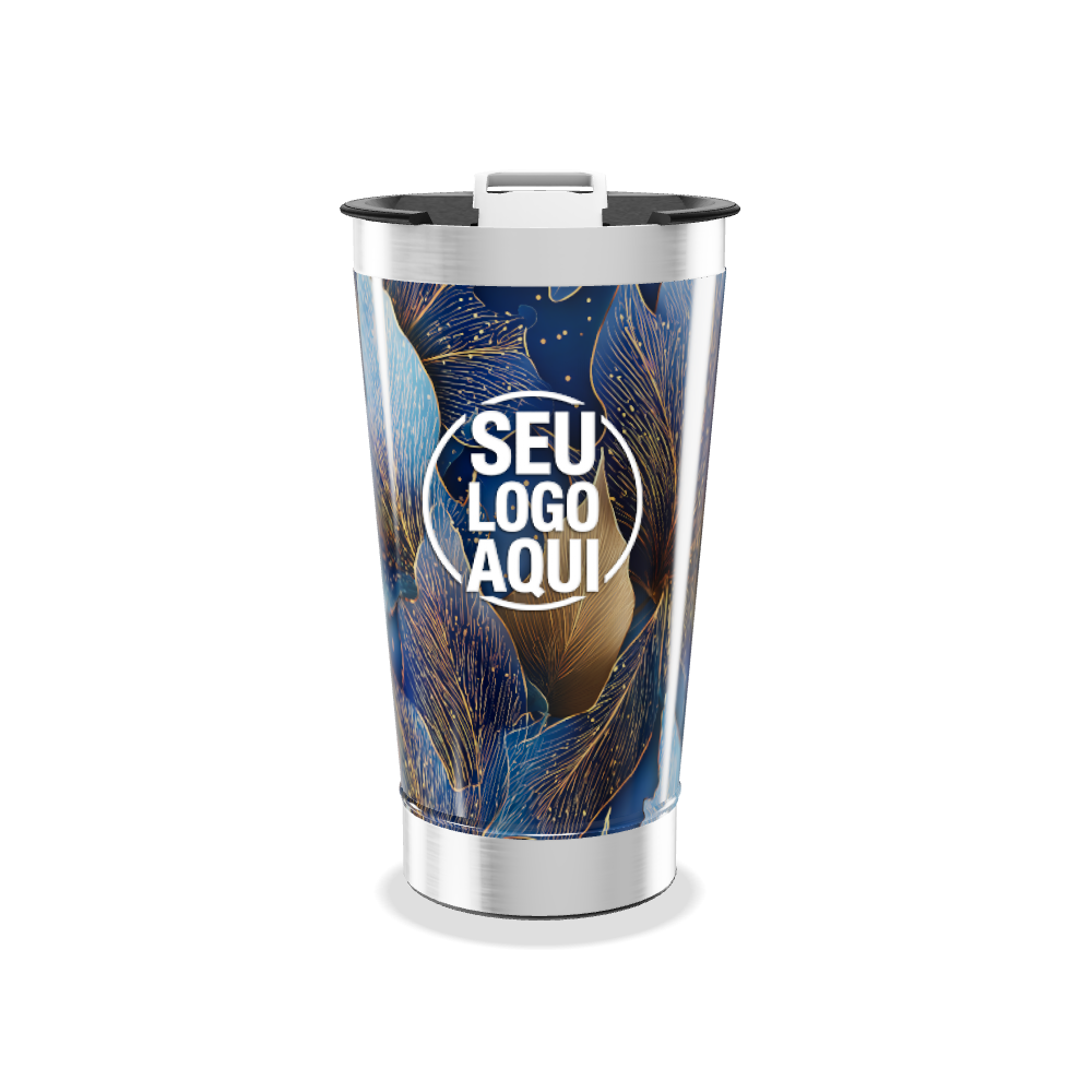 copo térmico folhas azul e dourado personalizado