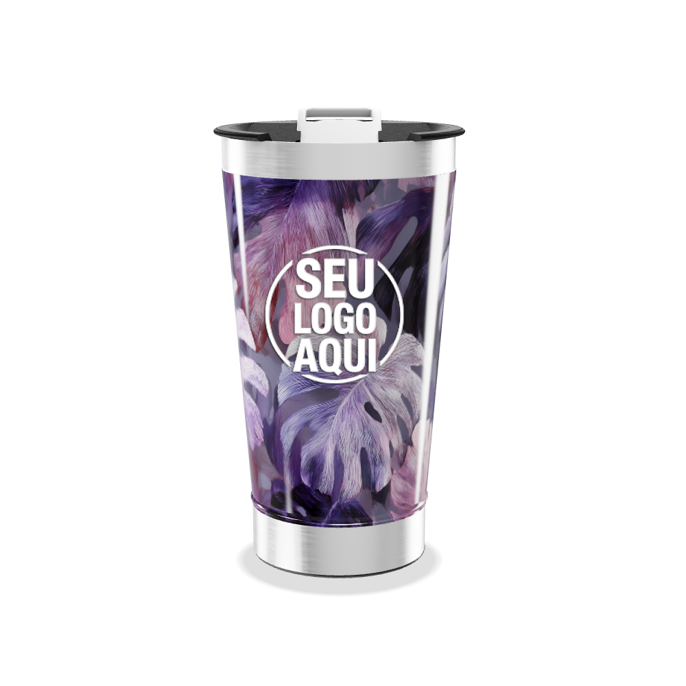 COPO TÉRMICO FLORES ROXAS AÇO INOX PERSONALIZADO