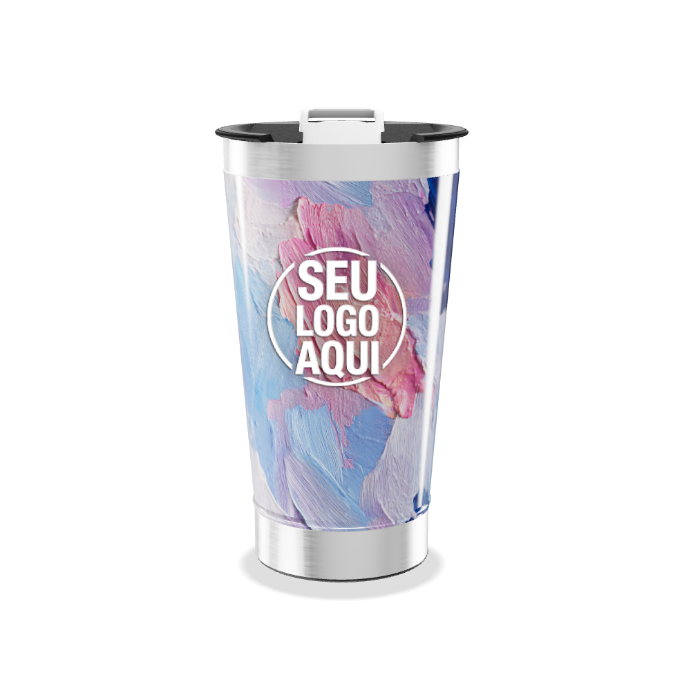 Estampa colorida e abstrata: ideal para quem busca um copo térmico com design único e chamativo.