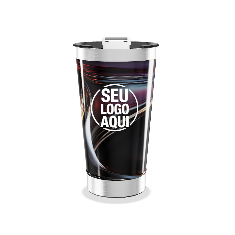 copo térmico preto com design fluido personalizado