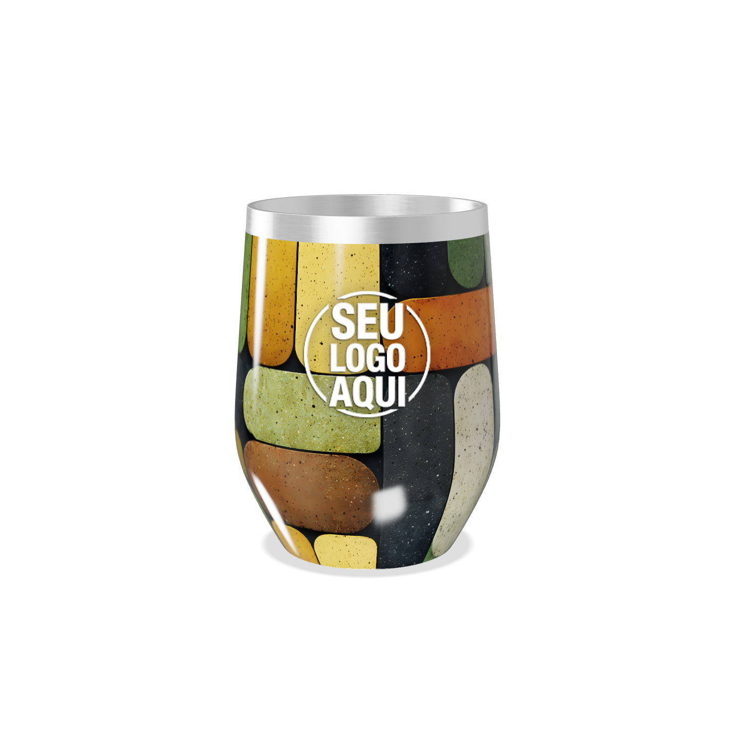 copo térmico slim colorido com padrão geométrico personalizado