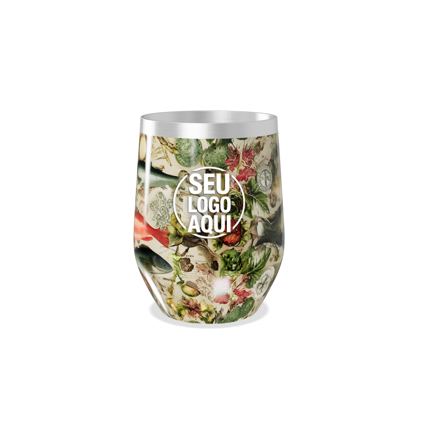 Copo térmico 320ml de parede dupla em inox livre de BPA, contém tampa com bocal.