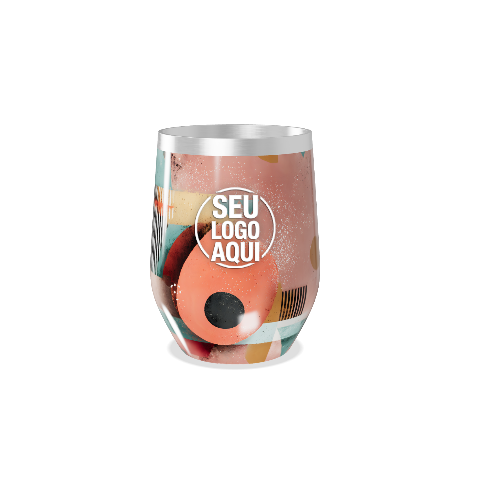 Estampa geométrica colorida: adiciona estilo e personalidade ao seu copo térmico.
