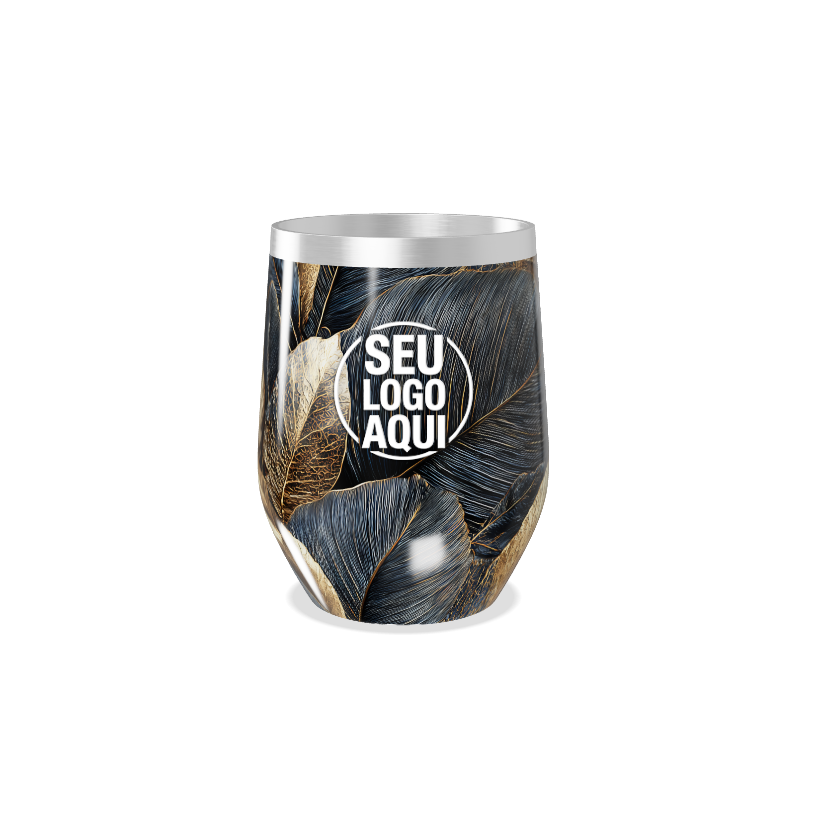copo térmico slim folhas preto e dourado personalizado