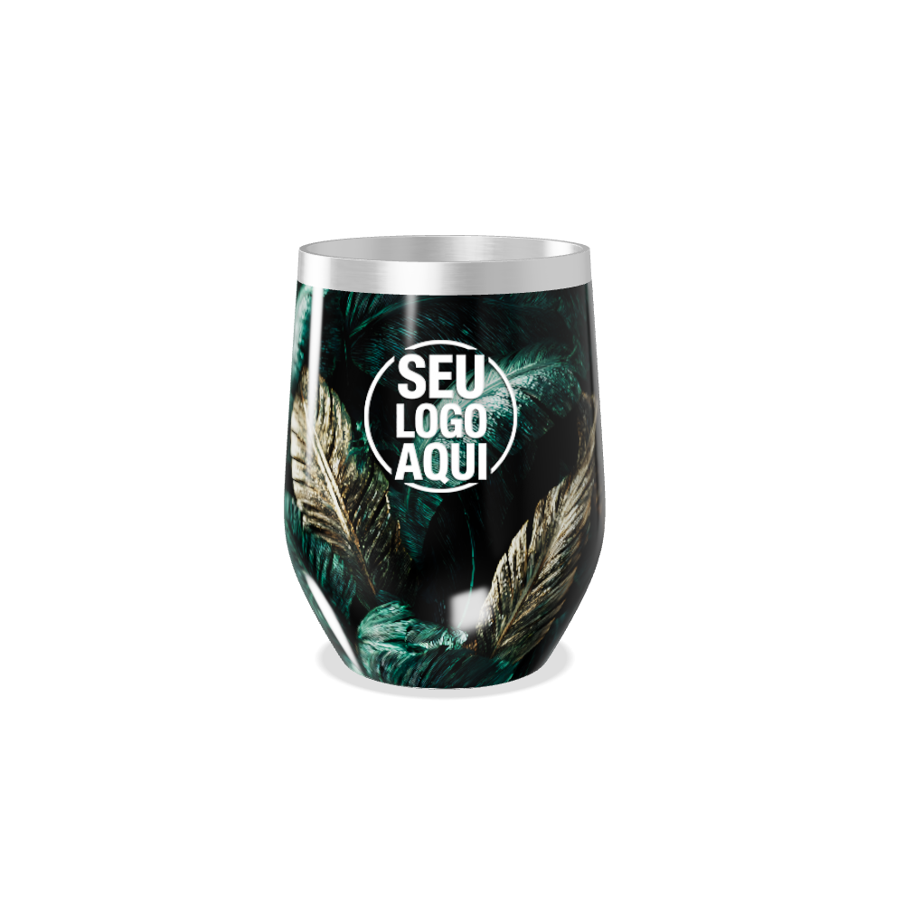 copo térmico slim folhas verde e dourado personalizado
