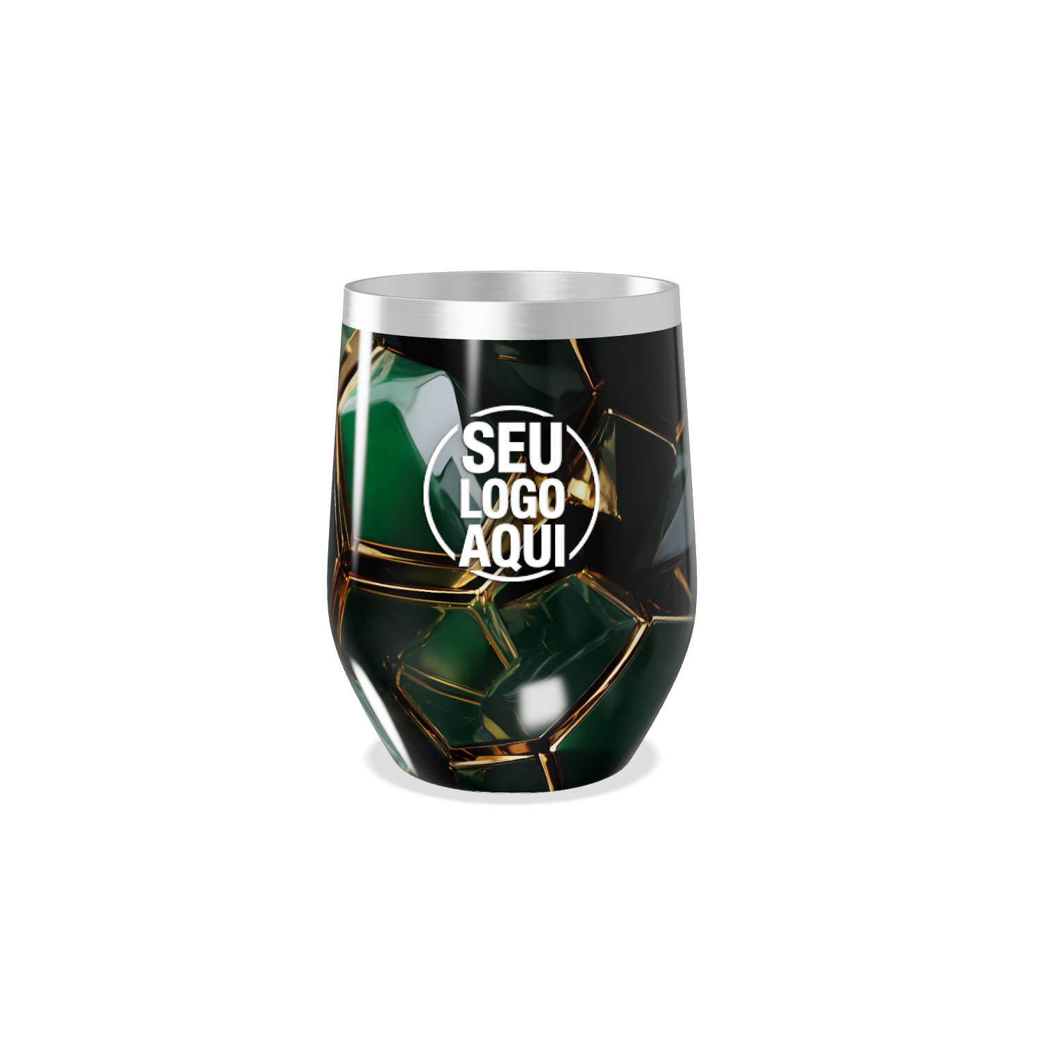 copo térmico slim verde com detalhes dourados personalizado