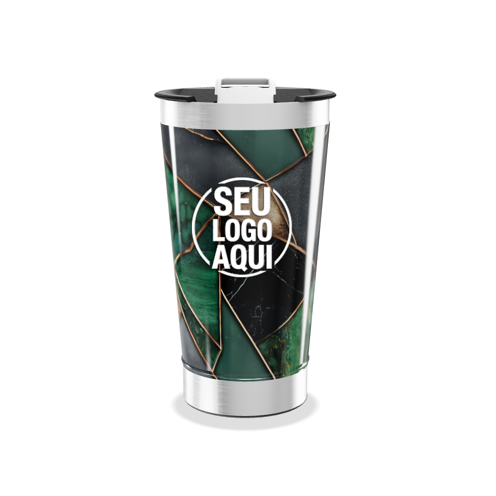 copo térmico verde com estampa geométrica personalizado