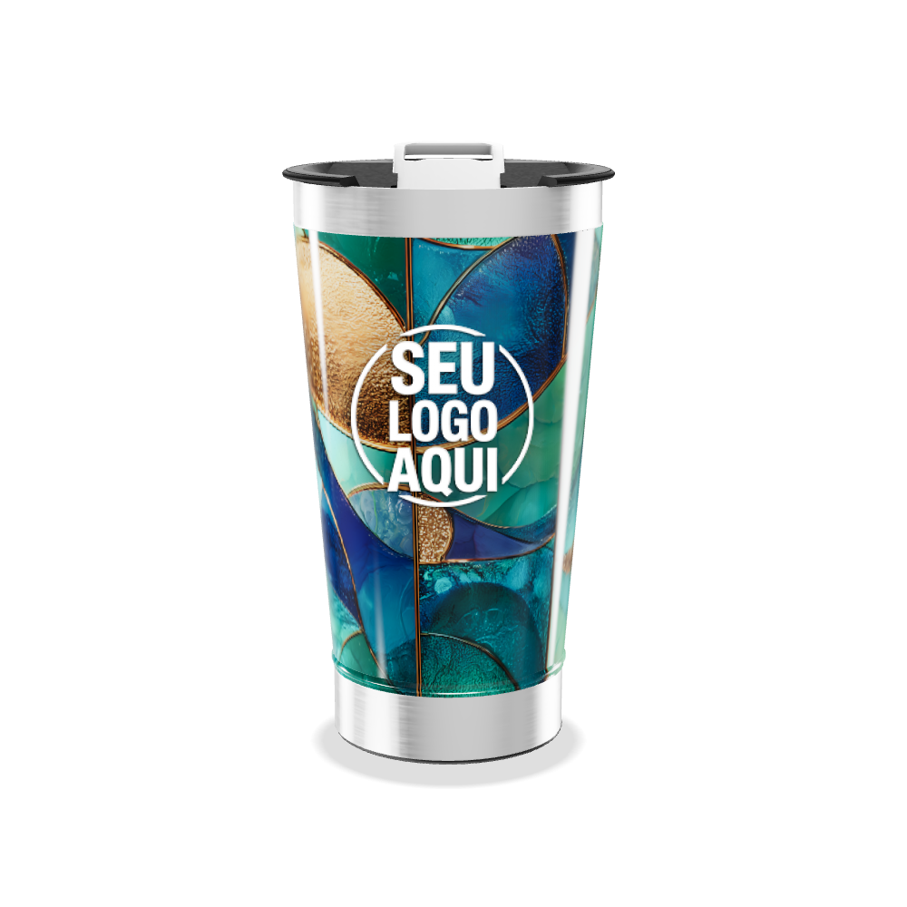 copo térmico vidro azul e dourado personalizado