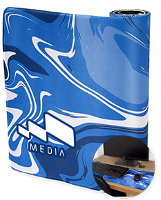 Desk pad flexível em poliéster com base em EVA antiderrapante, uma combinação que proporciona mais conforto durante o uso, além da proteção de superfícies planas.