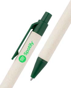 Esferográfica produzida através de pacotes de leite reciclados, contribuindo para o reaproveitamento do cartão e alumínio. Corpo em cartão e componentes coloridos em ABS 100% reciclado. Escrita em azul até 1,5 km.