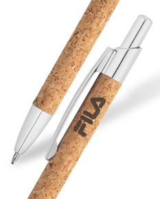 Esferográfica em cortiça e alumínio com clipe. Até 1,5 km de escrita.