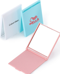 Compacto e funcional, este espelho duplo de bolso é produzido em material plástico. Seu design diferenciado conta com centro plano e bordas em declive, proporcionando um acabamento moderno e elegante.