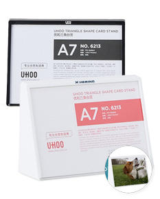 Expositor porta-retrato tamanho A7, confeccionado em poliestireno com placa acrílica transparente. Ideal para exibição de fotos, mensagens ou informativos em ambientes comerciais ou residenciais. Leve, resistente e com visual clean que valoriza o conteúdo exposto.