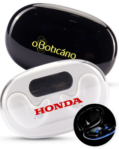 Fones de ouvido intra-auriculares sem fio, com estrutura leve e compacta em plástico e conexão via Bluetooth 5.3, garantindo estabilidade durante o uso. Possui estojo de carregamento com display de LED para visualizar o nível de carga. Acompanha cabo USB-C.
