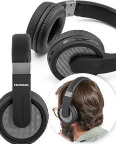 Fones de ouvido em ABS e PU com microfone, transmissão por bluetooth 5.0 e potência de 30 mW. A bateria tem uma capacidade de 300 mAh e tempo de reprodução de 12 horas.