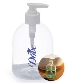 Frasco 500ml produzido em plástico, tampa rosqueável com válvula pump e trava de segurança, basta pressionar e girar a parte superior para travar o produto.